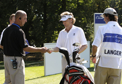 Ale no tak! Všichni jsme jenom lidi. A práce přece vždycky jde lépe od ruky, když ji člověk dělá uvolněně a baví se u toho. Takhle se snažím přistupovat k práci rozhodčího od samého začátku, kdy mě a Jirku Kubelíka jeden z turnajových ředitelů ET, Gary Tait při Challenge Tour na Ypsilonce vedl přesně tímhle směrem. Stoprocentní soustředění a precizní a vynikající výkon ještě neznamenají, že se u toho nemůžete bavit. Takže. Německo, šéfka komise hráček mává na patnáctce, já přijedu, zeptám se, jak můžu pomoct. Ona mi ukáže, kde leží míč. Já jí říkám, že dáme kámen nůžky, papír, a když vyhraje, tak jí drop dám. Ona dá kámen, já papír, říkám sorry a odjedu. Ona zahraje ránu, jako kdyby se nechumelilo, její spoluhráčky scéna zanechá v absolutním šoku.