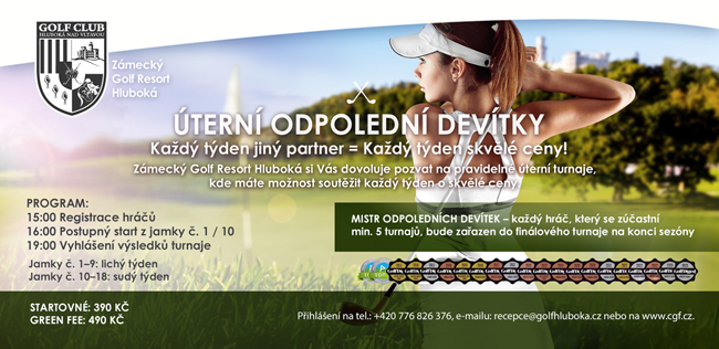Zámecký Golf Resort Hluboká si Vás dovoluje pozvat na pravidelné úterní turnaje, kde máte možnost soutěžit každý týden o skvělé ceny.