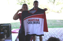 Všichni se pak zapojili do dražby předmětů, k nimž patřily jedinečné obrazy a kalendář s fotografiemi sportovních osobností, archivní vína, historické golfové hole, čokoládový bag nebo podepsané tričko, dres a čelenky Martiny Sáblíkové od jejího trenéra. Nakonec se v součtu příspěvků ze startovného, výtěžku z dražby a darů těch, kteří se turnaje nemohli zúčastnit, vybralo celých 47 500 Kč! Speciální tříkolku Lukášovi na míru vyrobí královéhradecká firma Harold Bicycles, která během turnaje přivezla některá kola na ukázku a s Lukášem a jeho maminkou domluvila a naměřila přesné parametry kola. Předání vyrobeného kola proběhne během mistrovství klubu (3. a 4. 10.) a my vás o tom budeme samozřejmě ještě informovat.